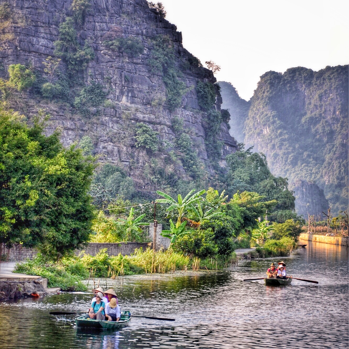This area is known as the Inland Ha Long Bay for its landscape, similar with the exception that mountains are surrounded by rice fields instead of sea waters. Plus,not as many tourists around will make you appreciate the area even more!