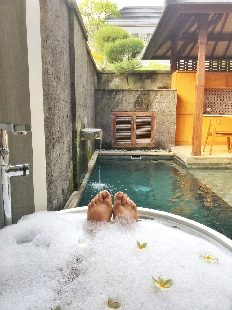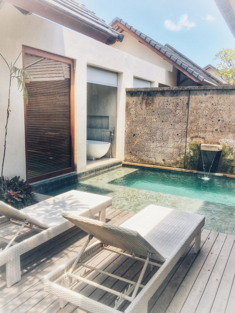 Walking into our little private villa, our breath was taken away by the beauty and peace surrounding it. Every room has its own privacy and its own little pool. The bathroom looks directly over it and I had the most relaxing moment enjoying a bath overlooking the water.