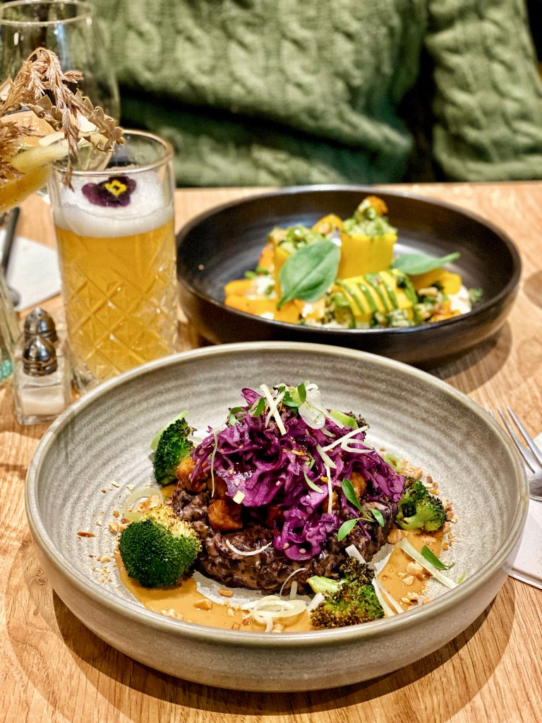 We particularly loved their Kimbap California roll (with kimchi, daikon, shiitake mushrooms, tempura spring onion , avocado and roasted almonds), the Bubba Gump Futo Maki (with plant based prawns, sundried tomatoes, peppers, fukujinzuke pickles and kimchi sauce) and the mini arancini, filled with shiitake mushrooms on a pesto & parmesan sauce.